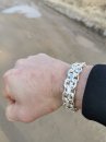 Походящая длина браслета зависит от его массы и обхвата запястья. Справа указаны массы браслета и диапазоны длин, на которые он должен быть больше обхвата запястья. - Более 80 г — на 4,5-5,5 см